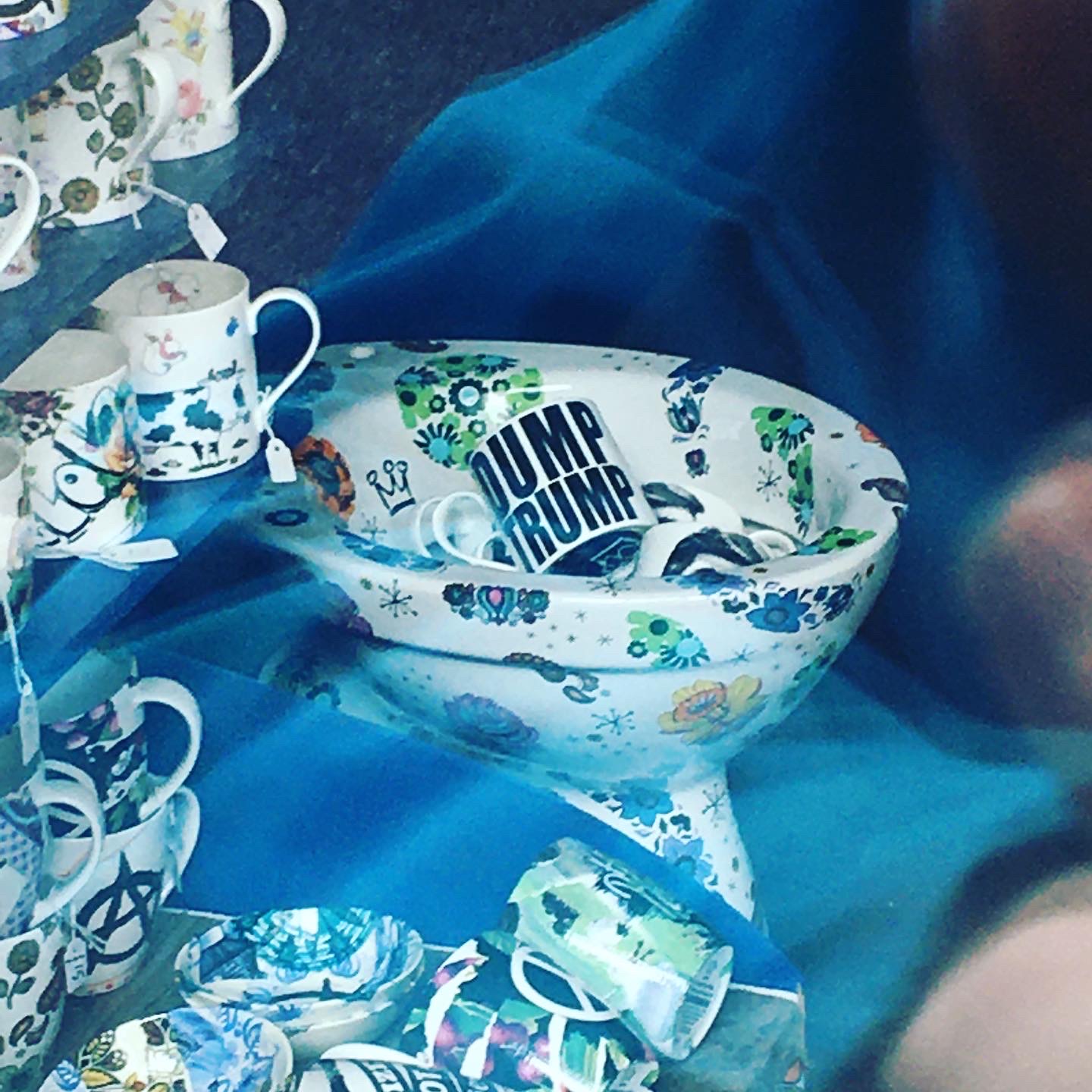 As if to drive the point home, the china shop across the street makes a colourful selection of porcelain mugs and homeware – decorated with socialist slogans. Perfect for that delicious cuppa – served up with a slice of anarchy perhaps. For me the piéce de ‘resistance’ was a mug I saw there in 2020 emblazoned with the slogan ‘Dump Trump’ – neatly positioned for display in a porcelain toilet bowl.