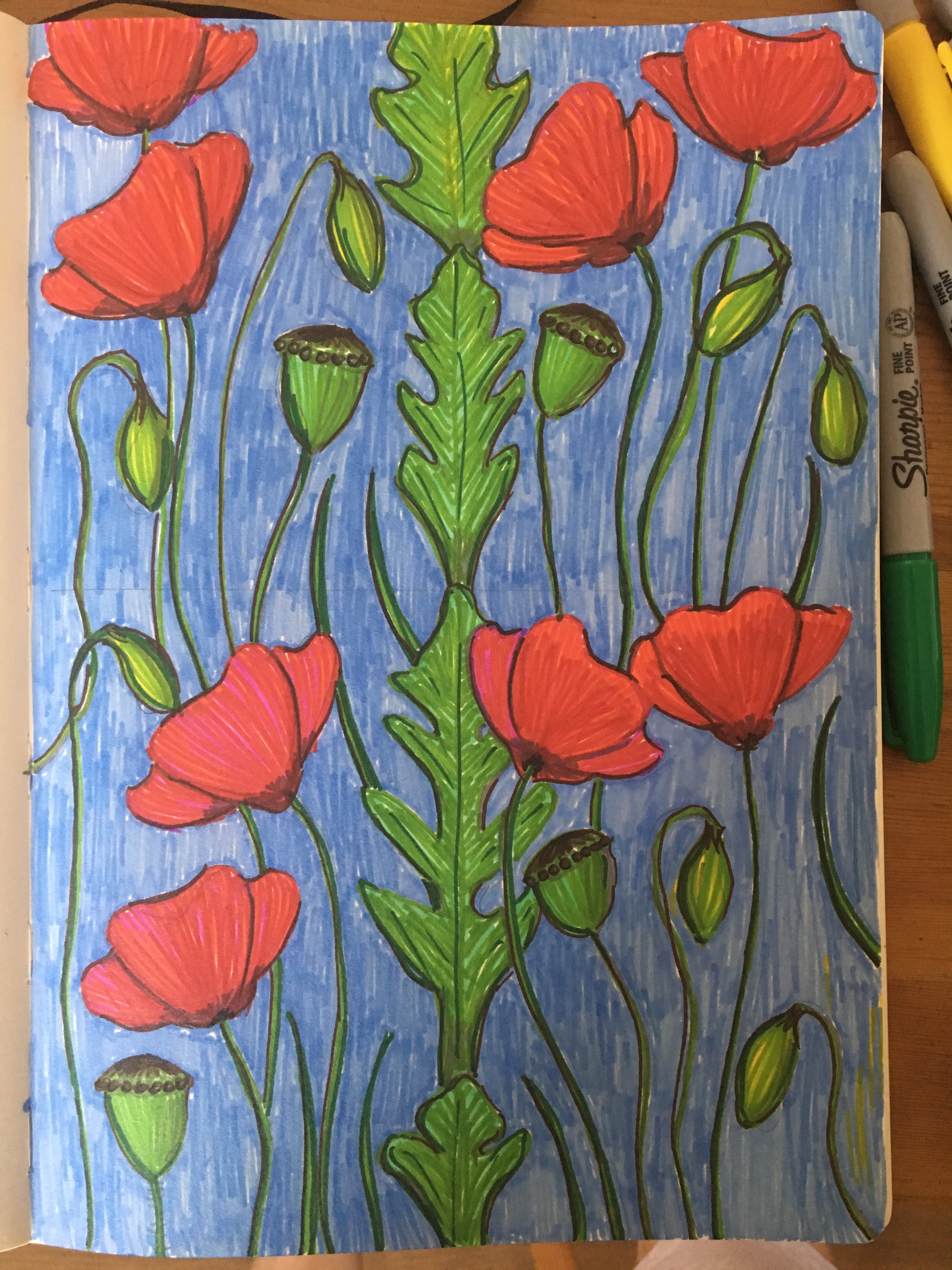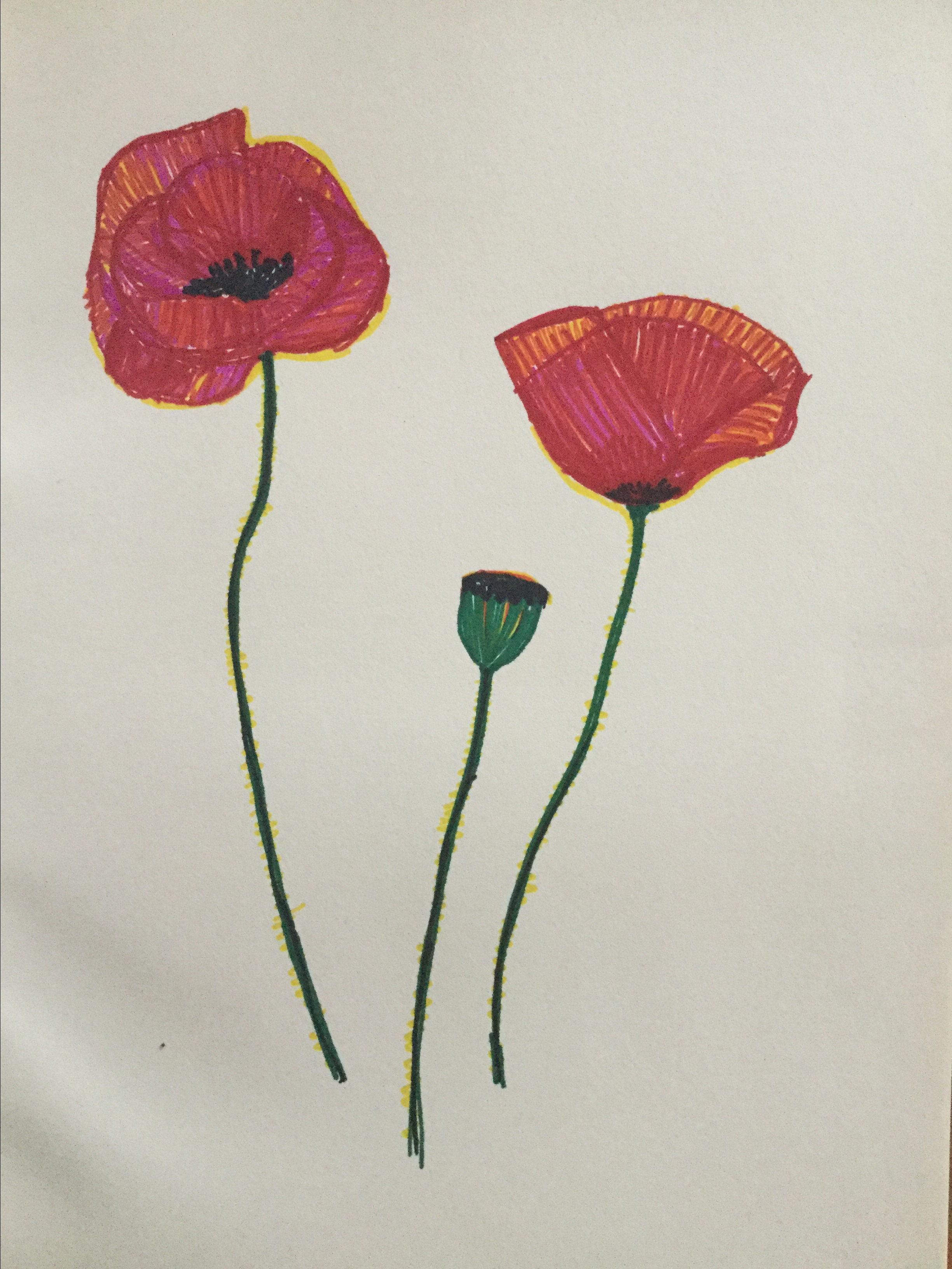 Not many poppies in the shops but they crept into this project from other places (I’ve always been so interested in the different shapes at various stages of their lifecycle; the hard, almost ceramic seed case and the ephemeral, delicate flower).